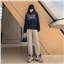 2022春新款灰色运动裤女宽松束脚高腰垂感显瘦直筒阔腿休闲卫裤