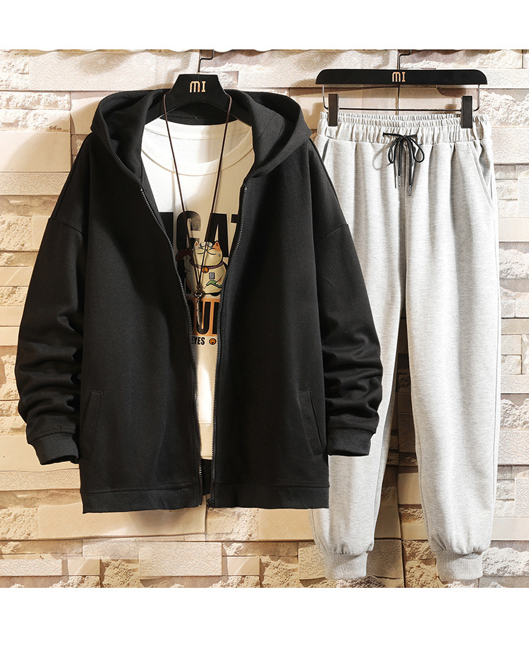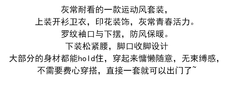 颜色 开衫套装_黑衣黑裤 开衫套装_黑衣灰裤 开衫套装_灰衣黑裤 开衫套装_灰衣灰裤 开衫卫衣_黑色 开衫卫衣_灰色