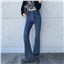 高腰牛仔裤女2022年秋季新款复古chic修身弹力显高微喇叭裤长裤子