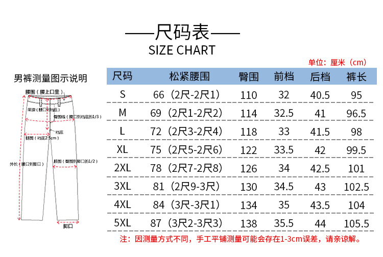 尺码 2XL 3XL 4XL 5XL L M S XL
