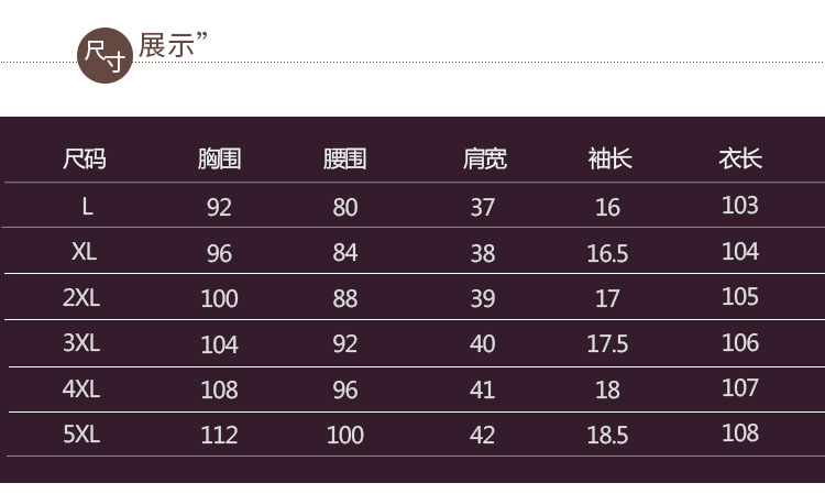 尺码 2XL 3XL 4XL 5XL L XL