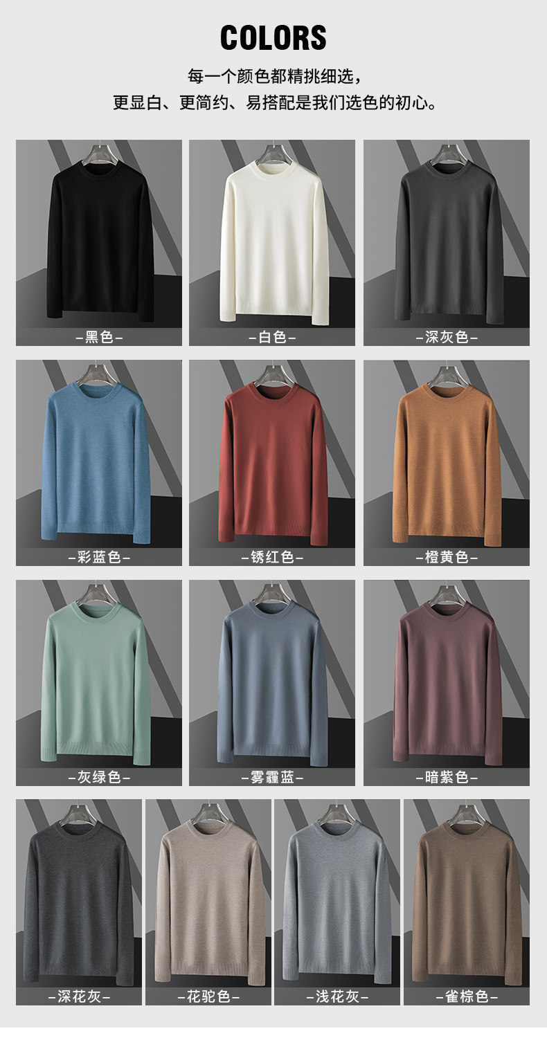 颜色 圆领藏青 圆领黑色 圆领酒红 圆领黄色 圆领雾霾蓝 圆领卡其 圆领铁灰 圆领湖绿 圆领中灰 圆领象牙白