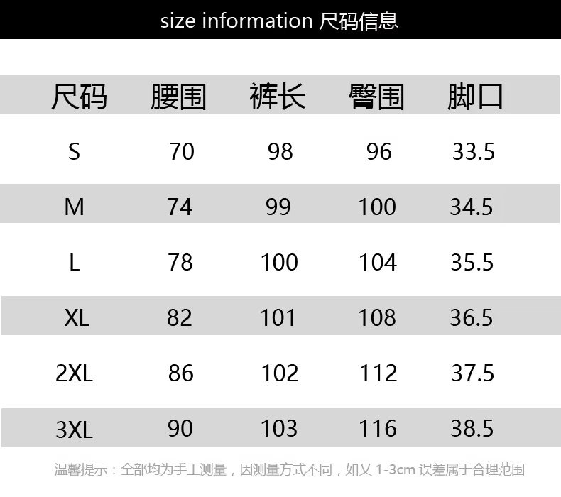 尺码 2XL 3XL L M S XL