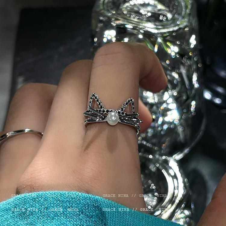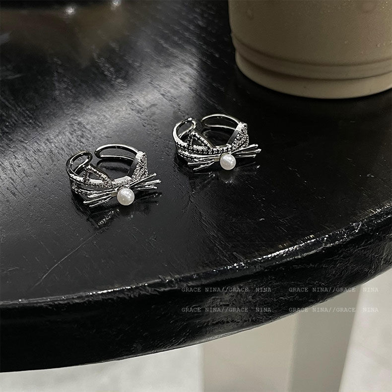 颜色 白锆石猫戒指
