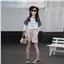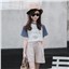颜色 蓝袖T恤 棉麻短裤 T恤+短裤套装