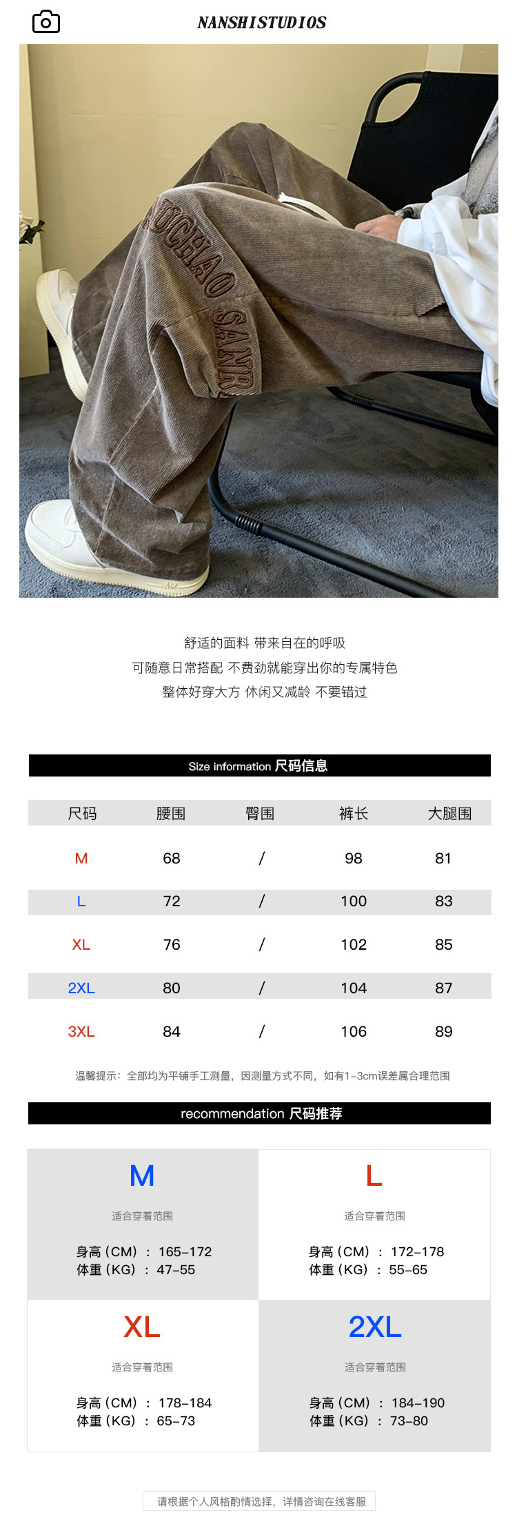 尺码 2XL 3XL L M XL