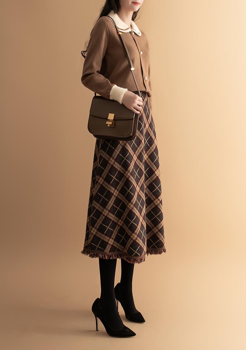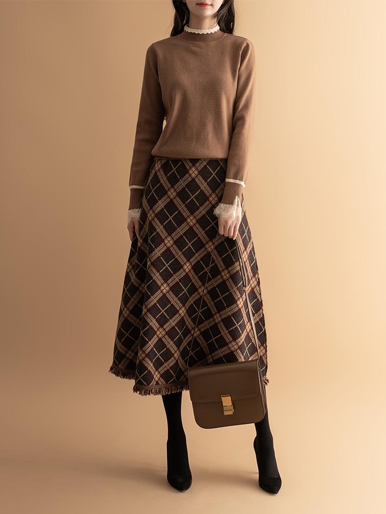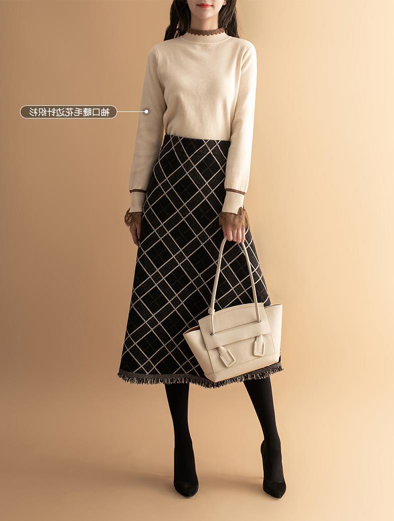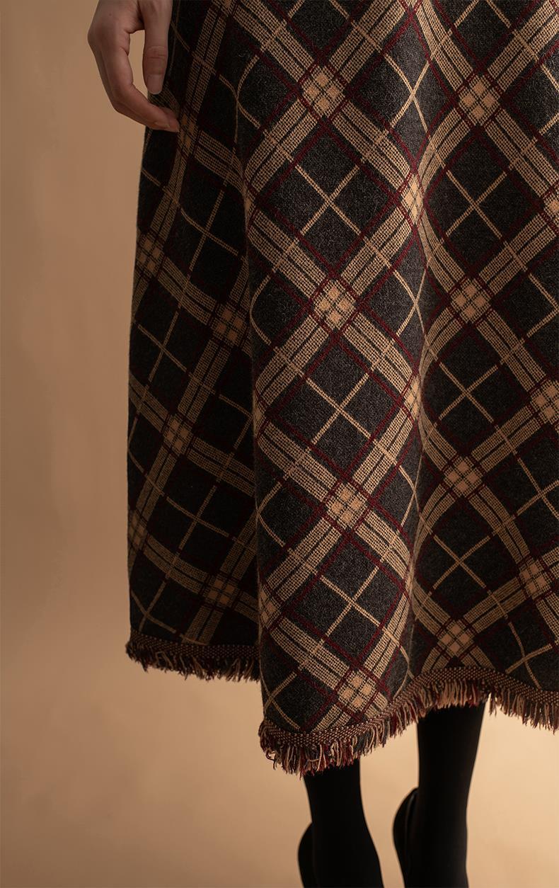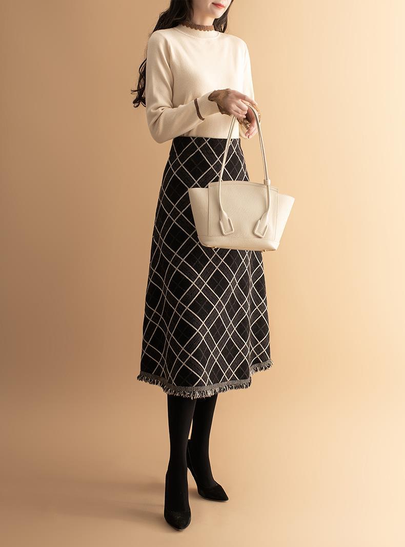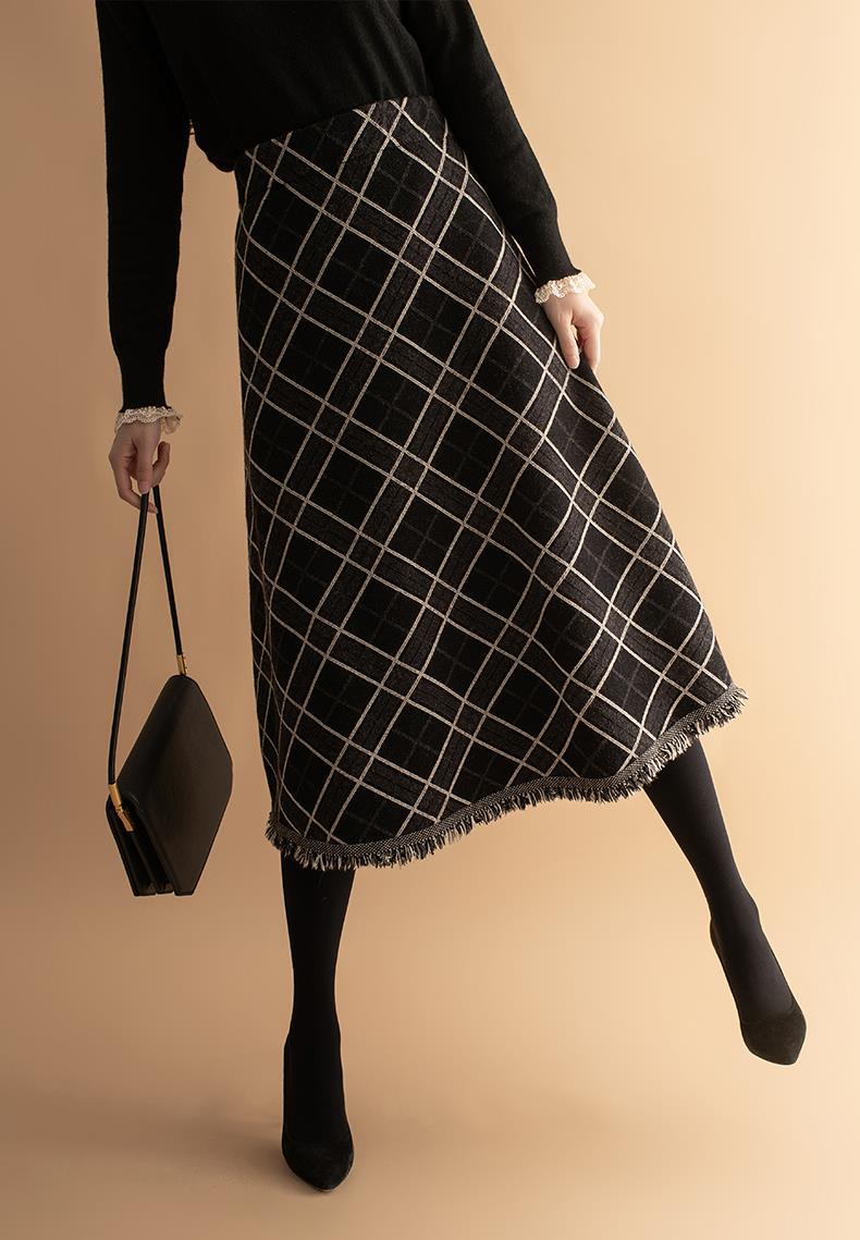 货号:菱形提花流苏中长款毛针织裙