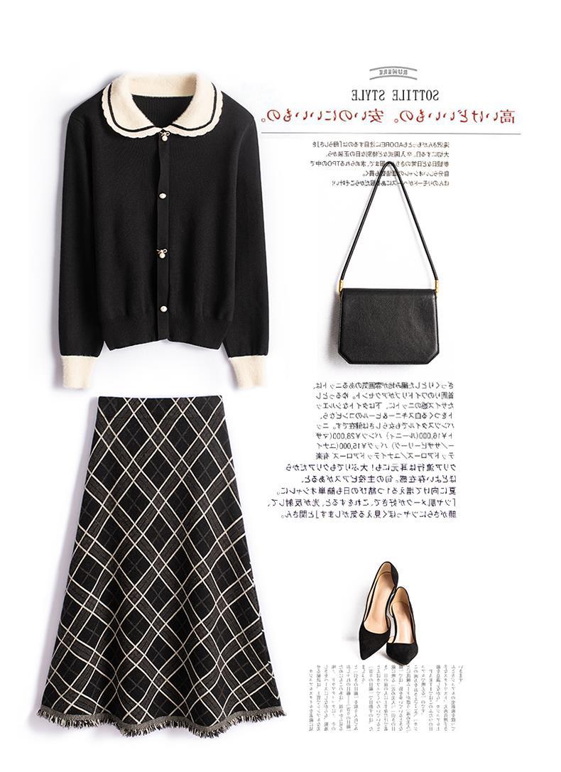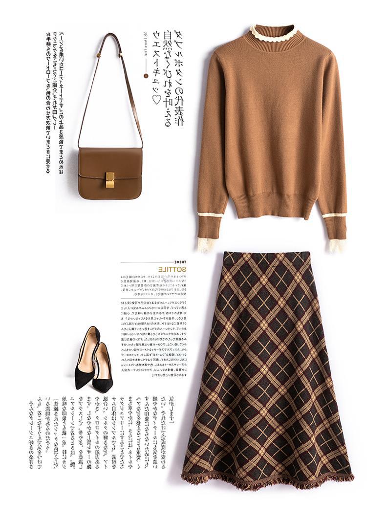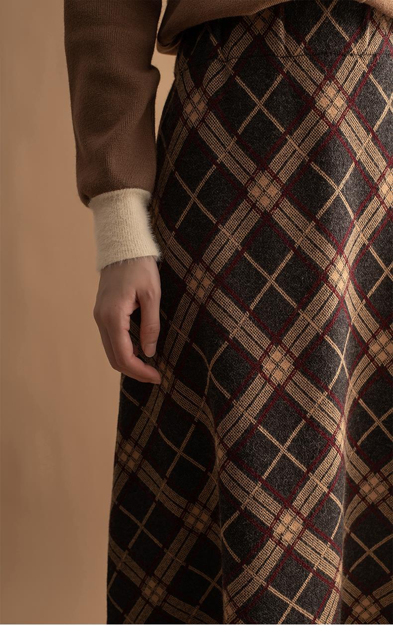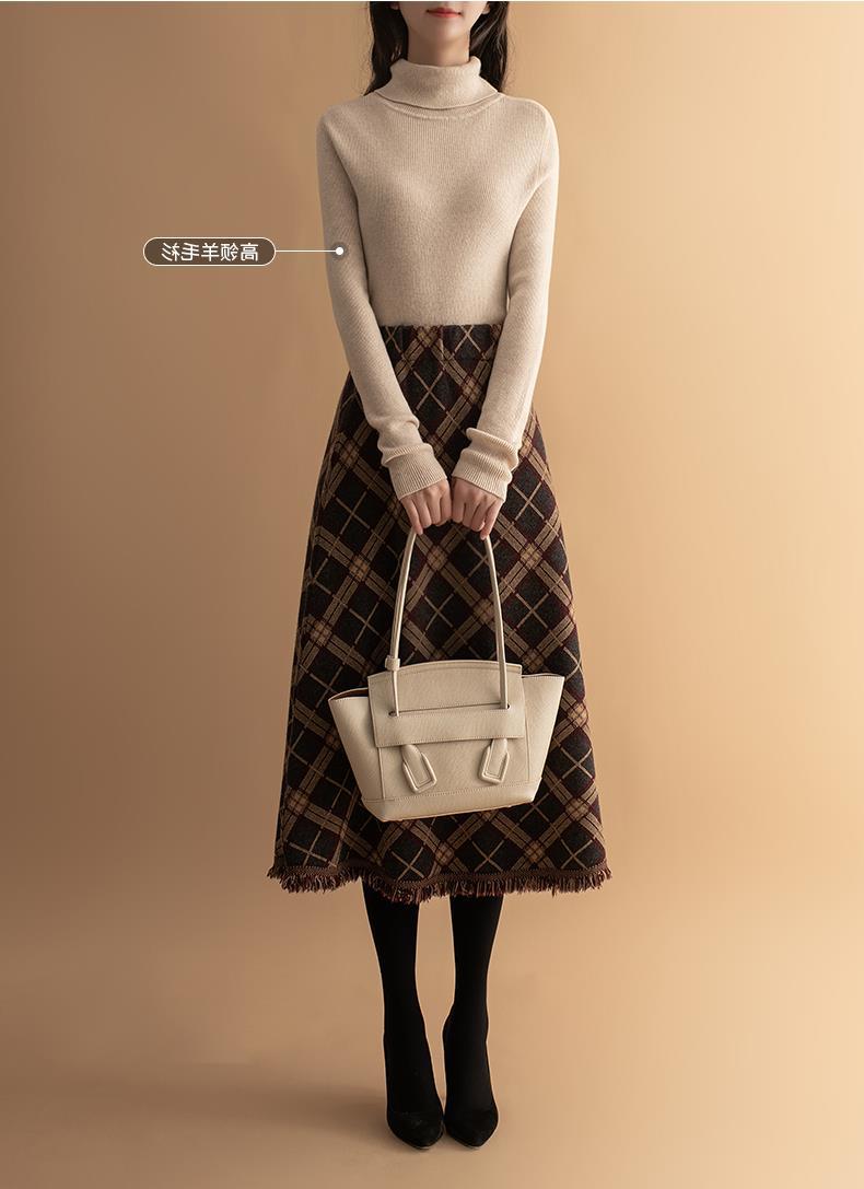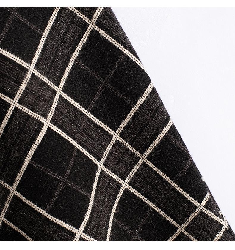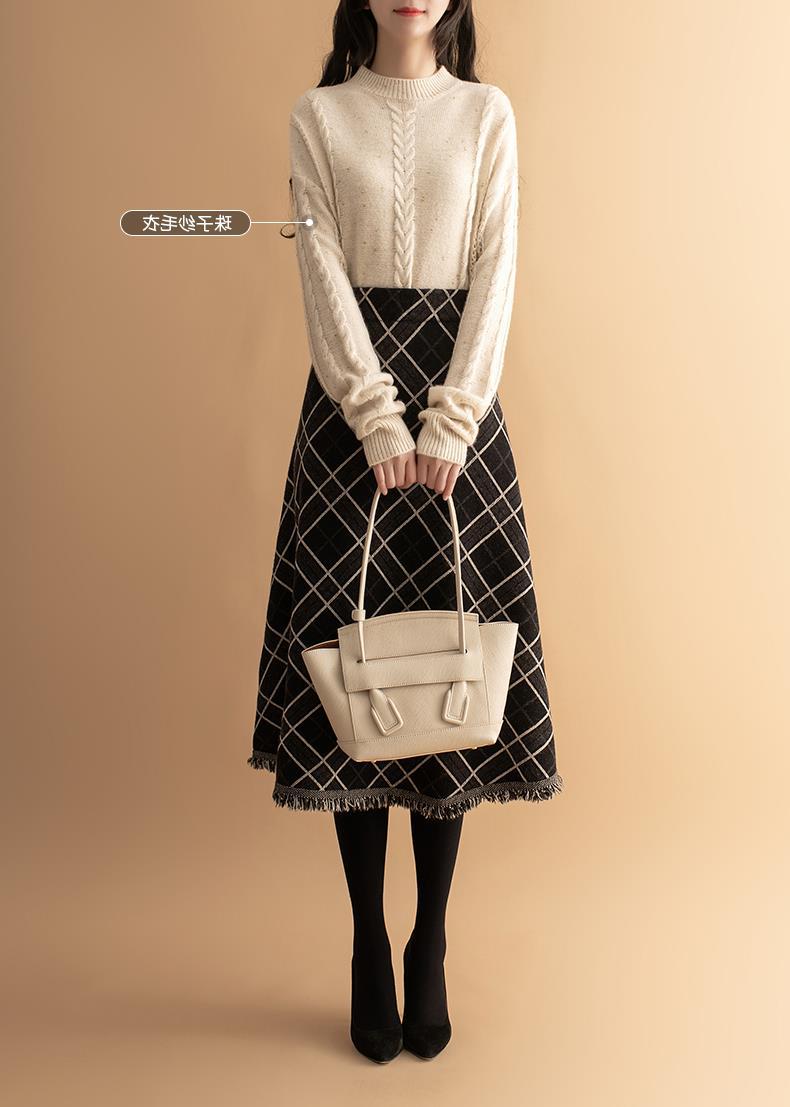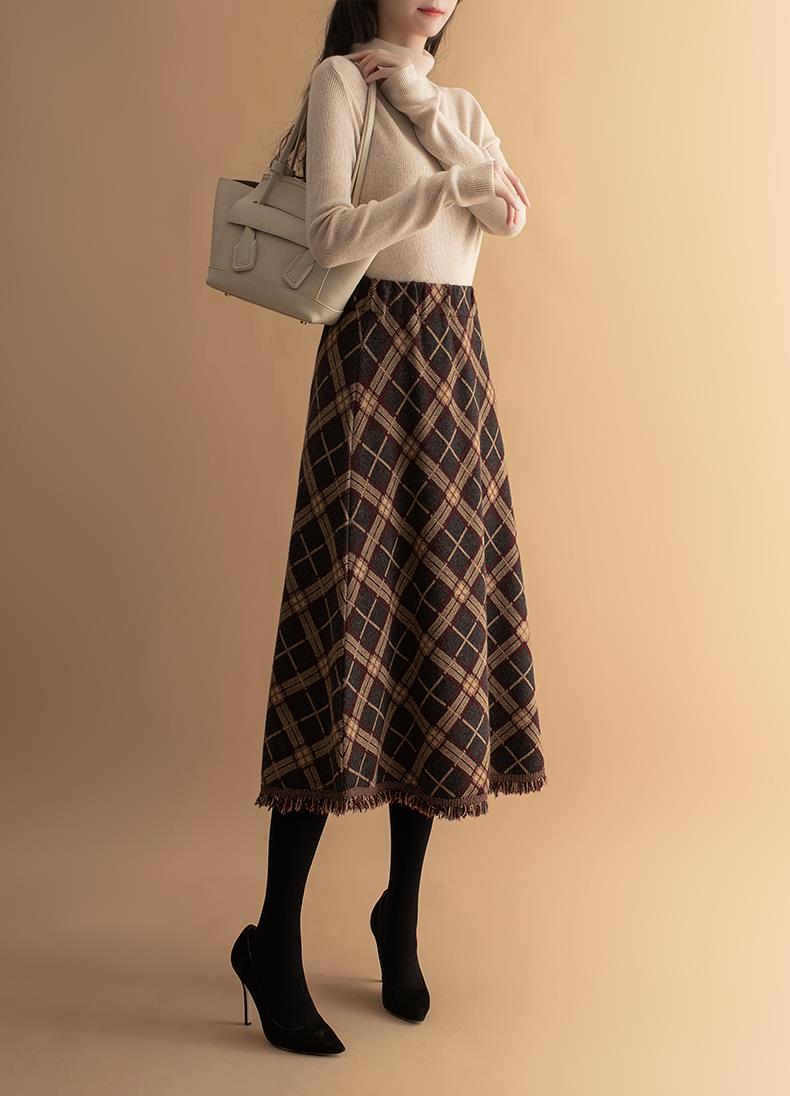 货号:菱形提花流苏中长款毛针织裙