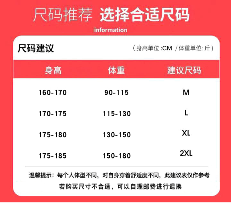 尺码 2XL L M XL
