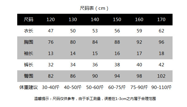 尺码 120cm 130cm 140cm 150cm 160cm 170CM