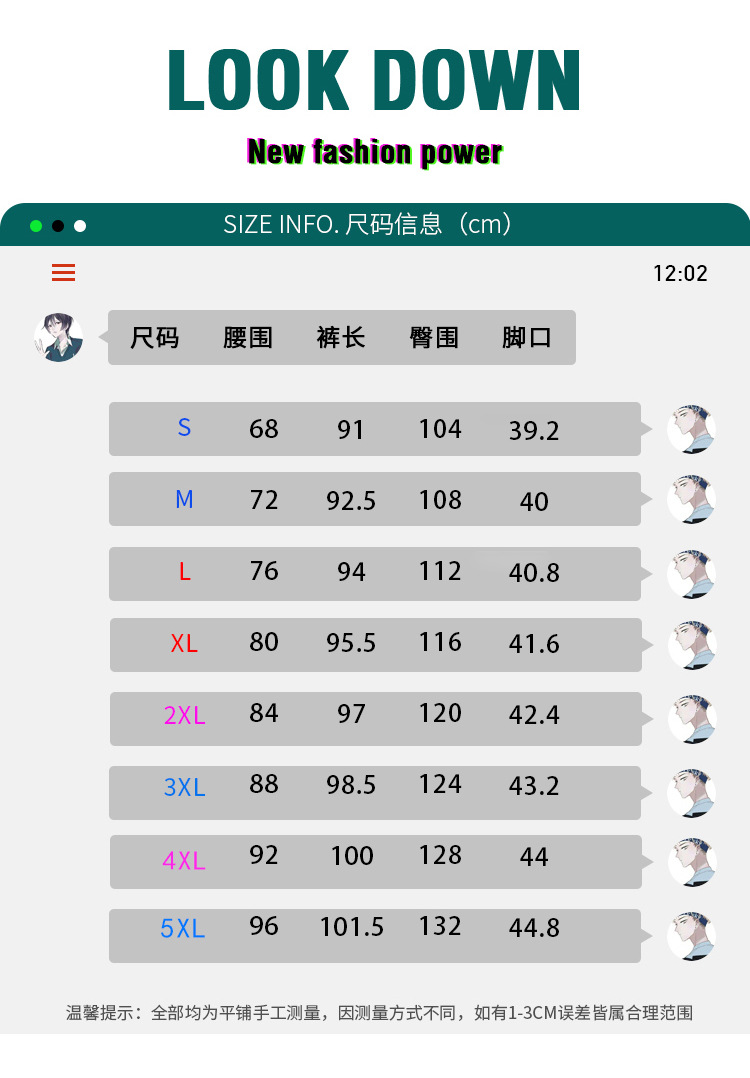 尺码 2XL 3XL L M S XL