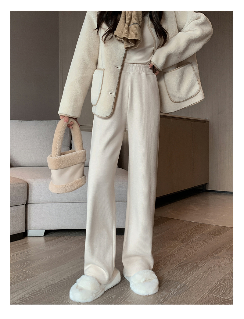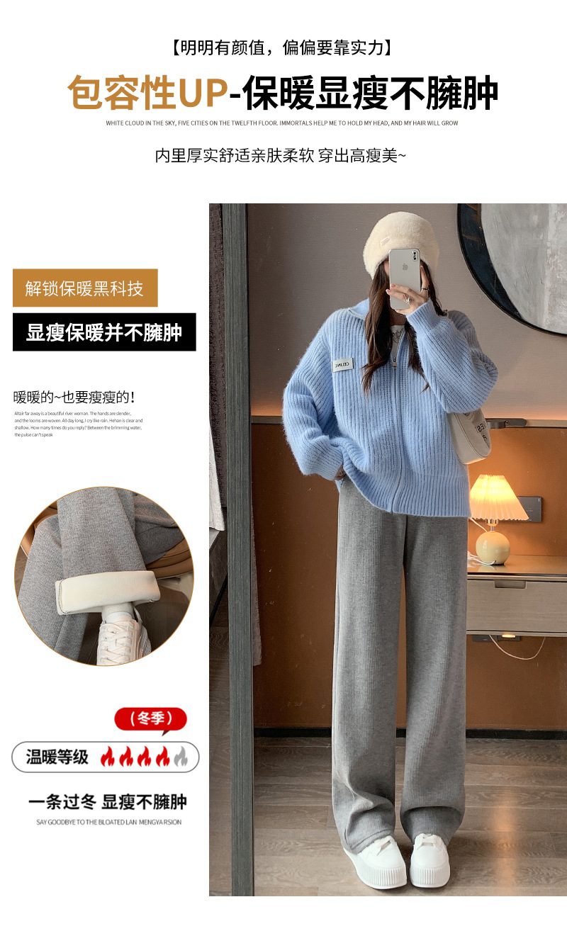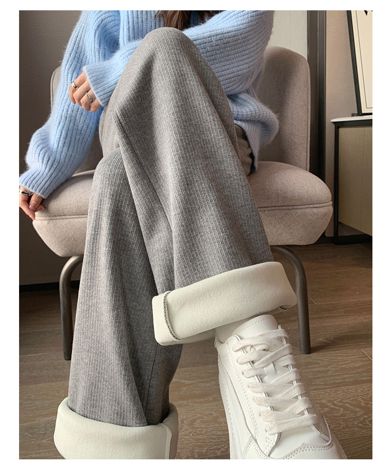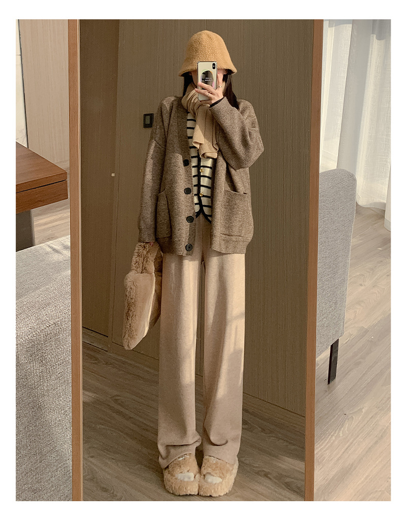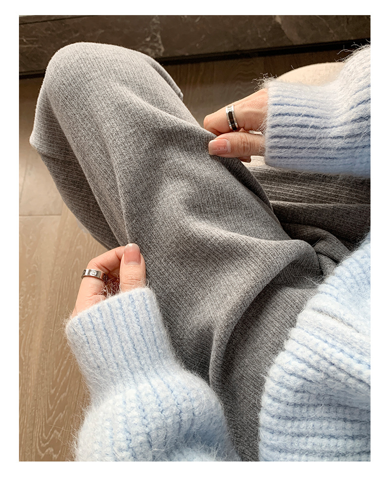 口袋羊绒针织裤女秋冬新款窄版细条纹垂感直筒裤子加绒加厚H1082