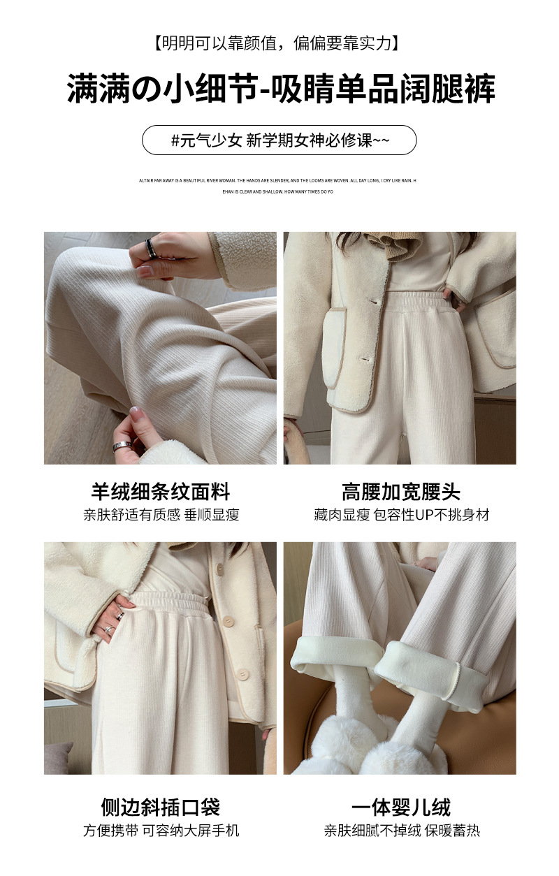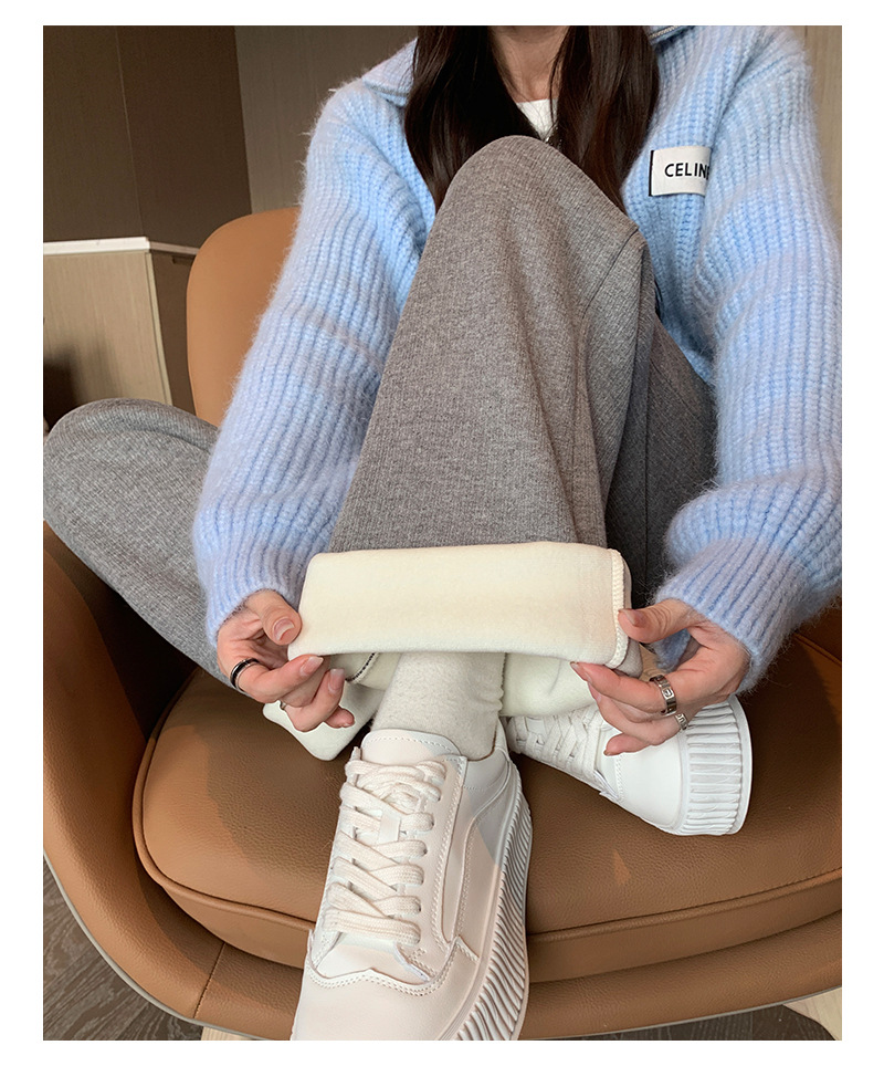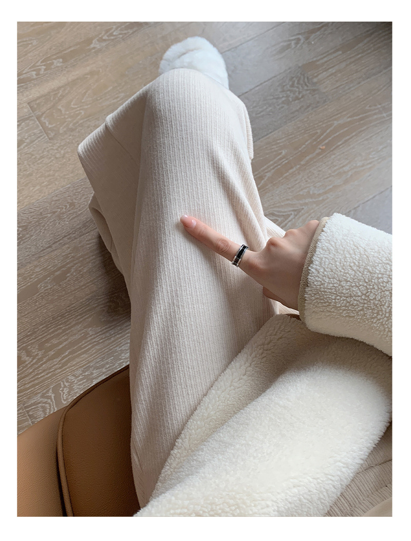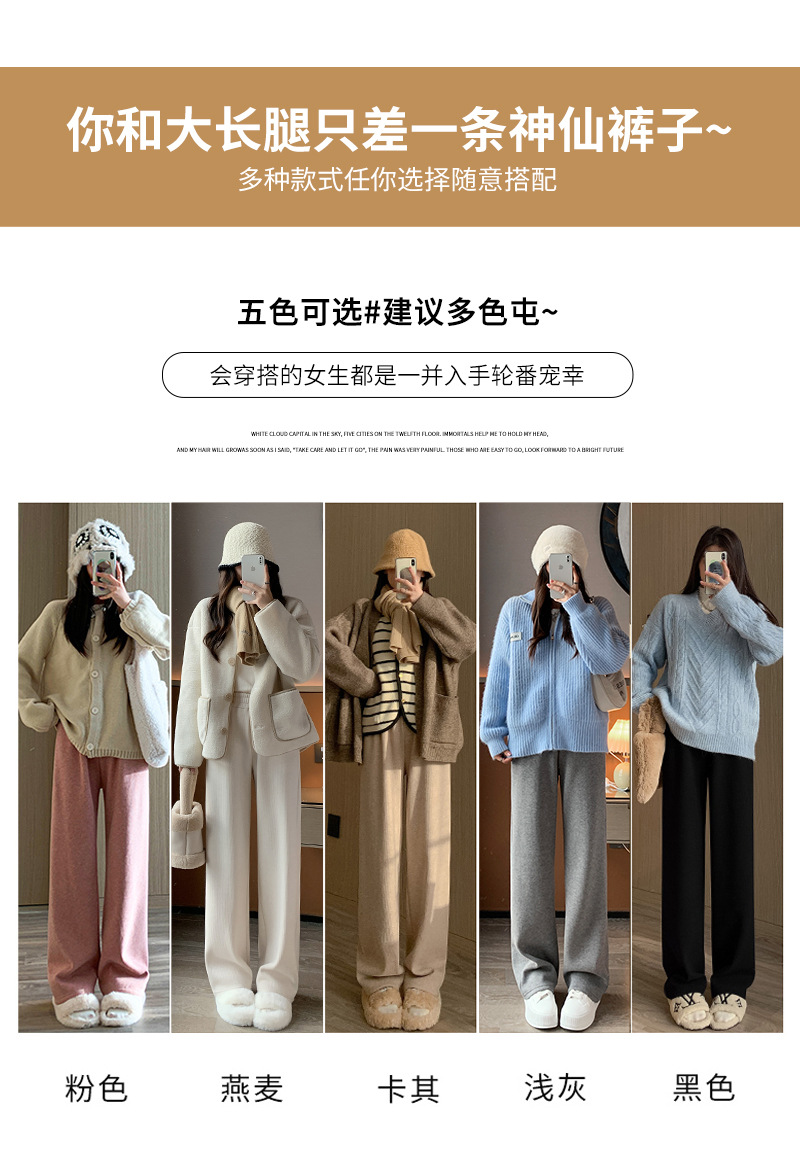 口袋羊绒针织裤女秋冬新款窄版细条纹垂感直筒裤子加绒加厚H1082