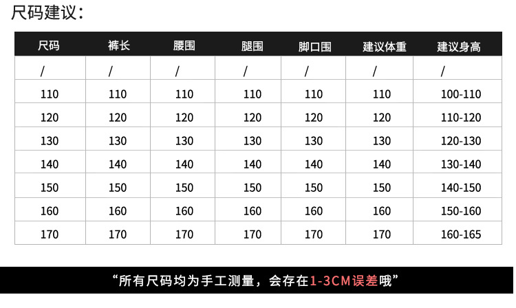 尺码 110cm 120cm 130cm 140cm 150cm 160cm