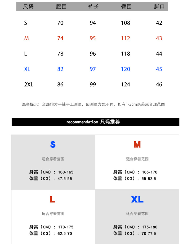 尺码 2XL L M S XL XXL XXXL