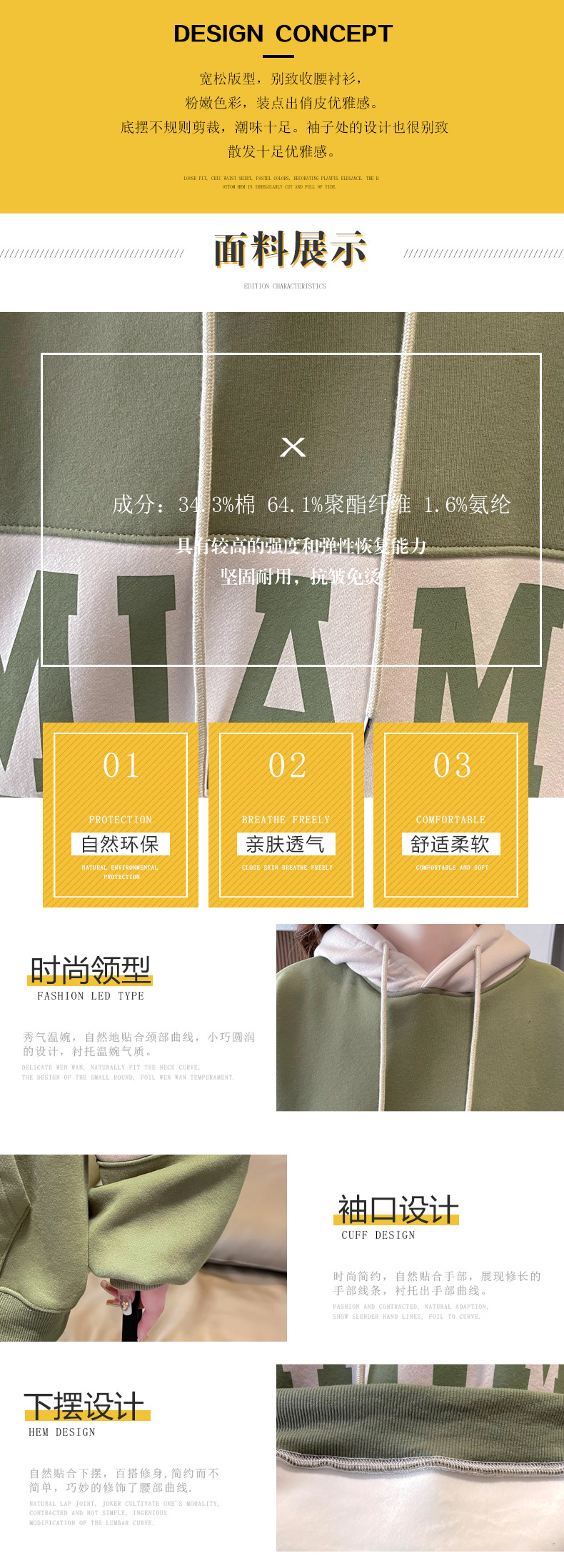 领子:连帽