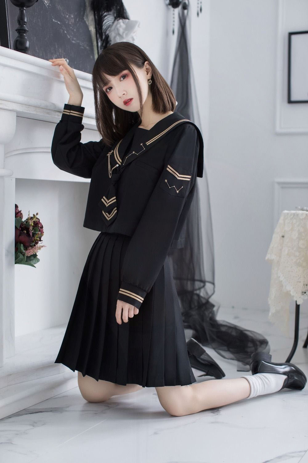 长袖上衣+长裙80(送领带+袜子)