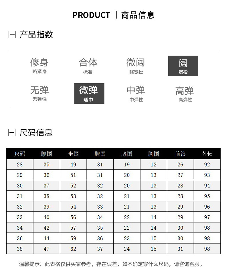 尺码 28 29 30 31 32 33 34 36 38