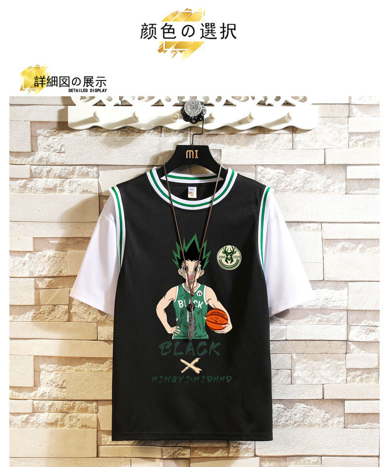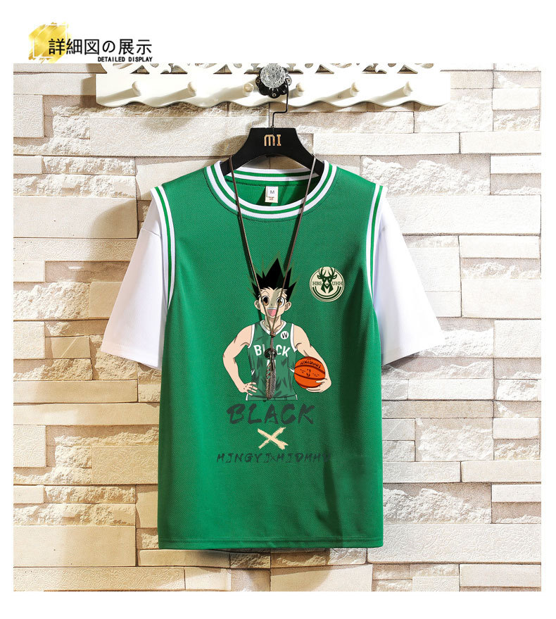 篮球服运动短袖套装男孩12-15岁初高中学生13假两件t恤14大童夏装
