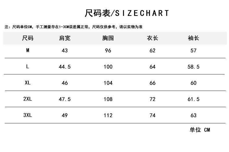 尺码 2XL 3XL L M XL