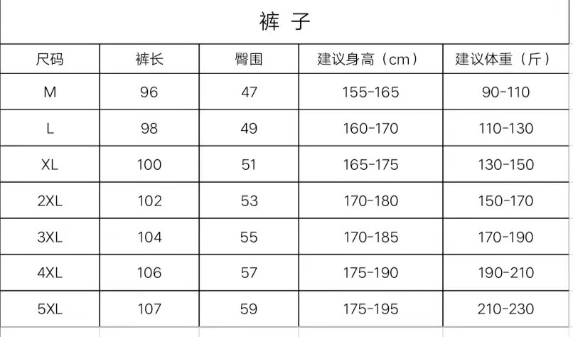 尺码 2XL 3XL 4XL 5XL L M XL