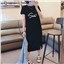 外贸2022夏季新款宽松修身连衣裙时尚印花开叉裙子短袖女装潮