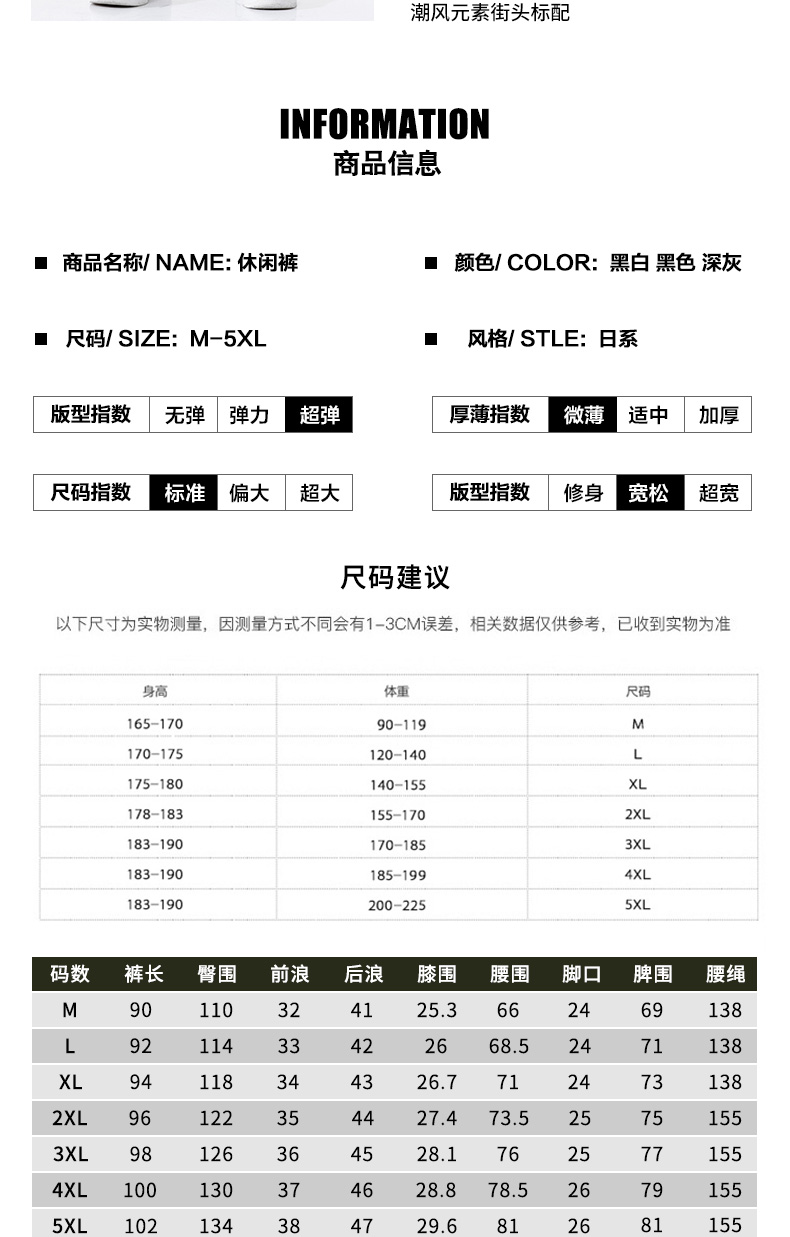 尺码 3XL L M XL XXL