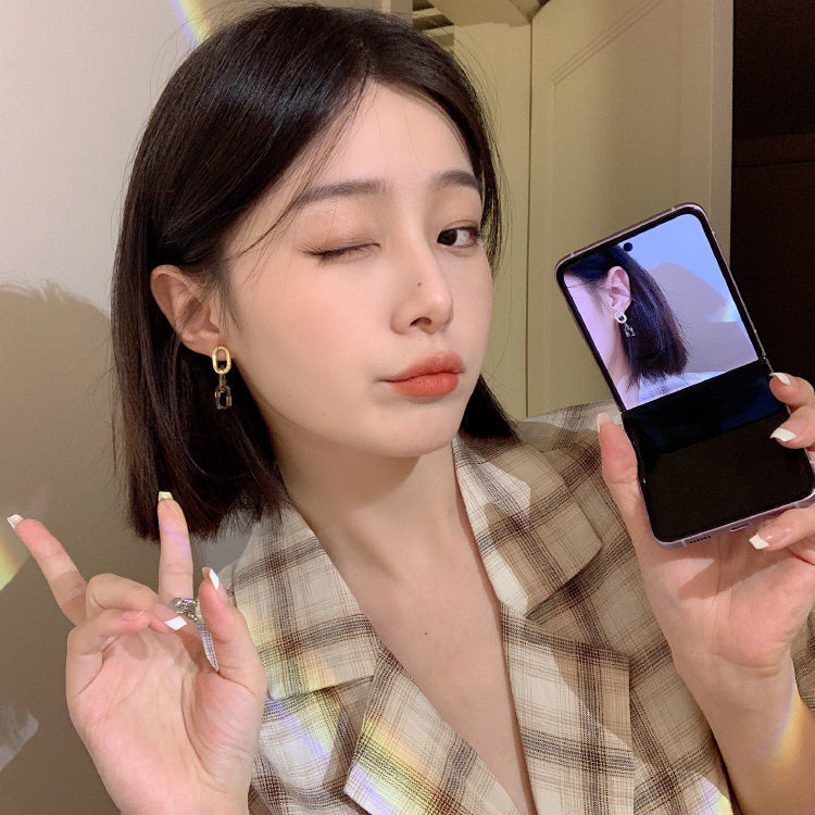 颜色 琥珀拼接耳钉