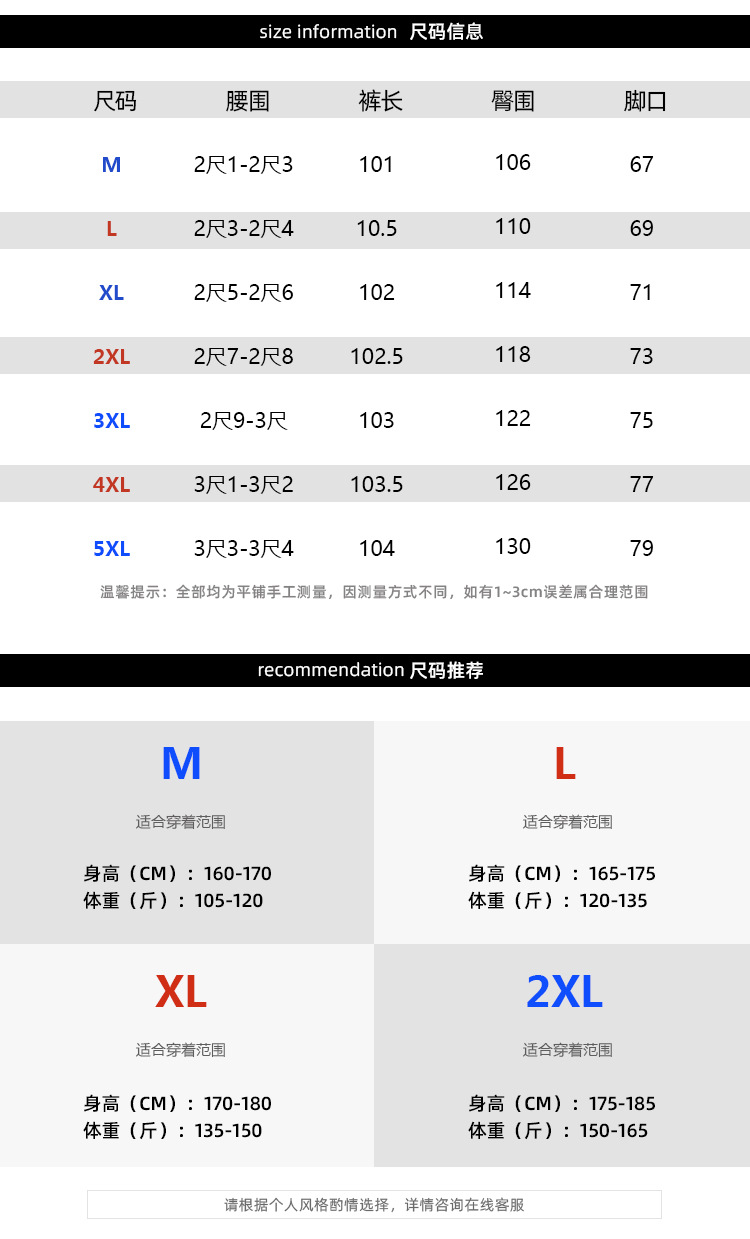 尺码 2XL 3XL L M S XL