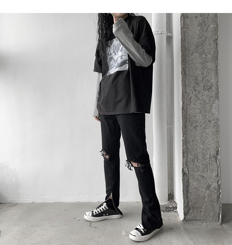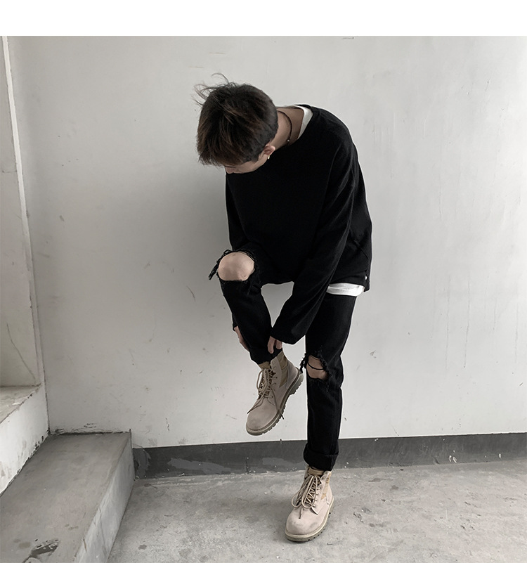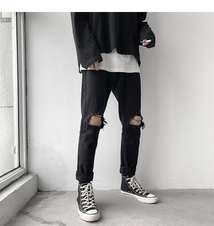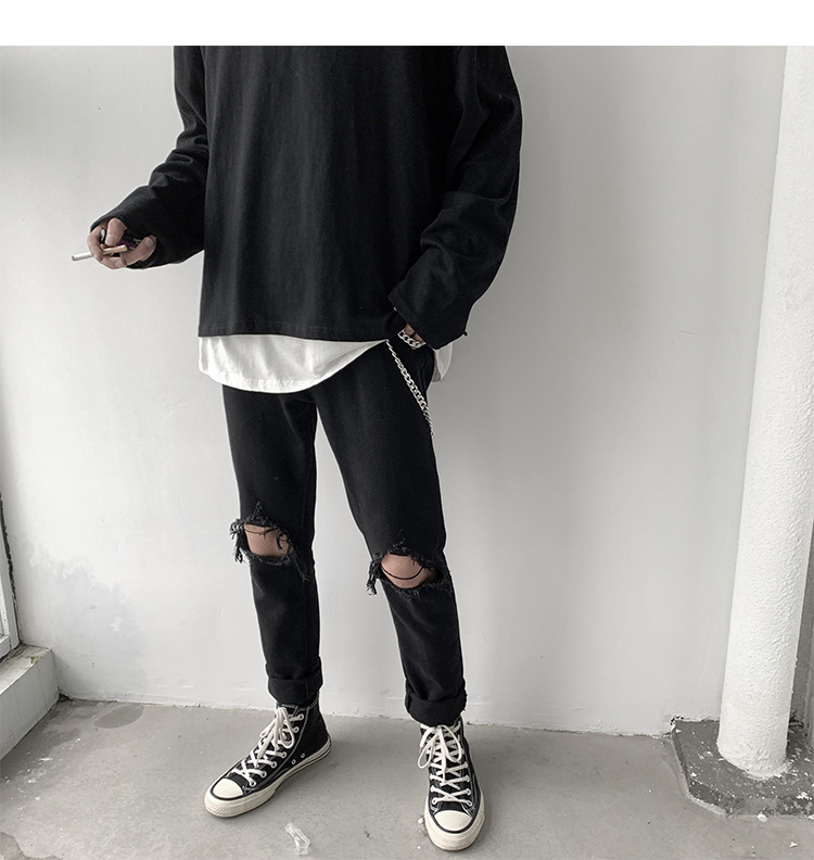 裤子膝盖破洞可以按自己需求剪破