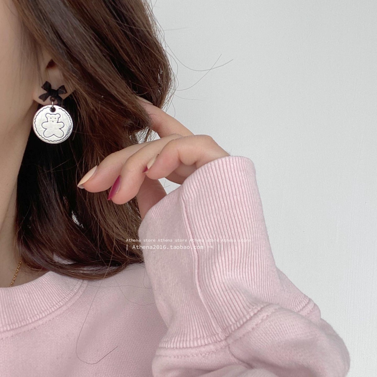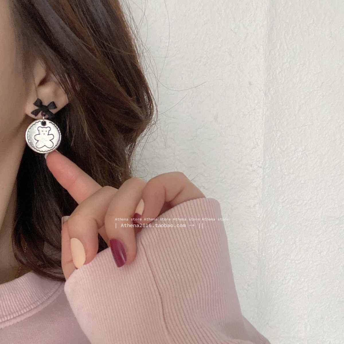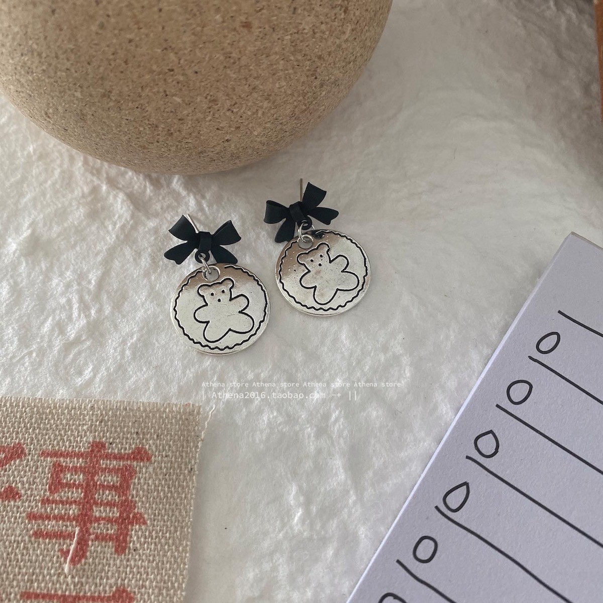 颜色 黑蝴蝶结耳钉