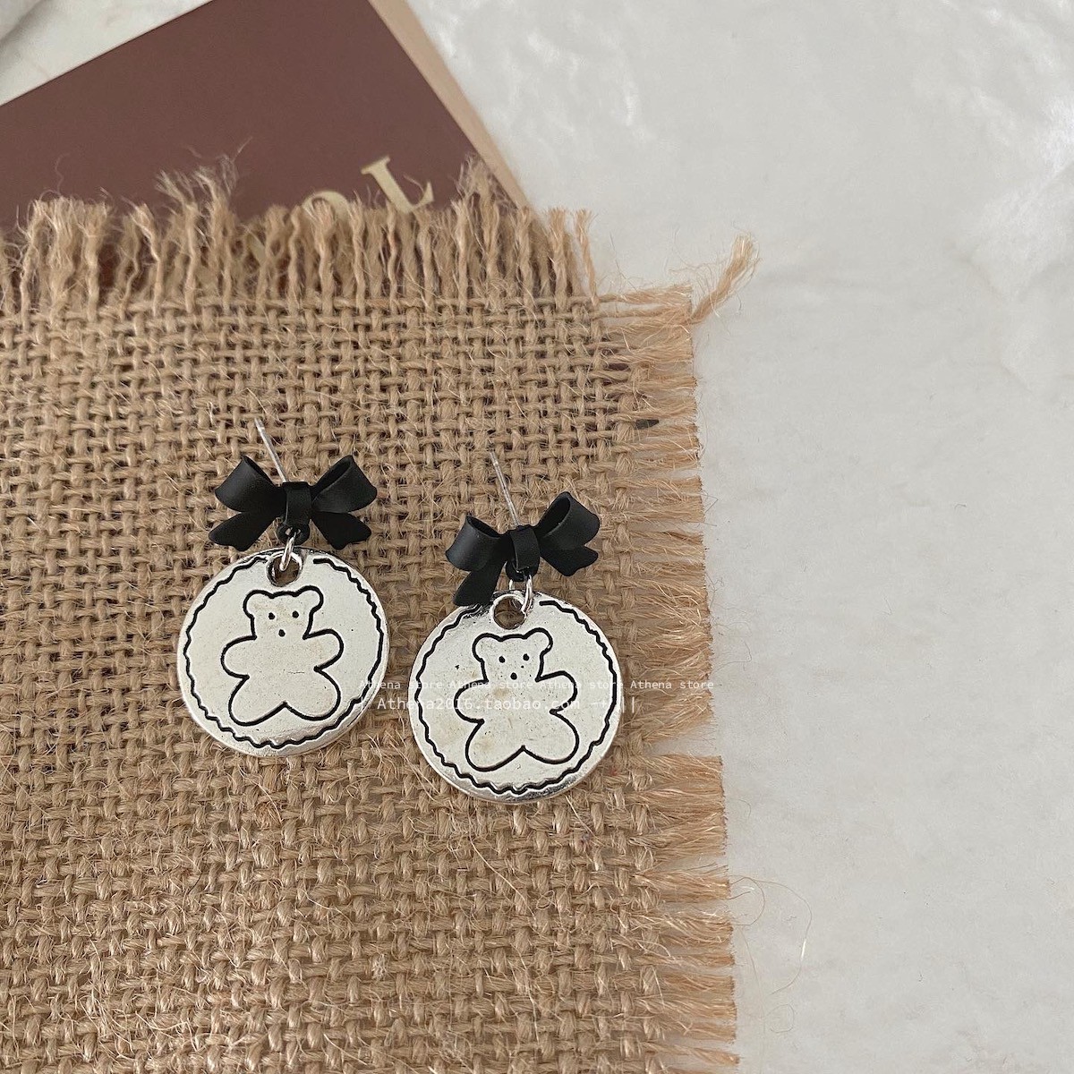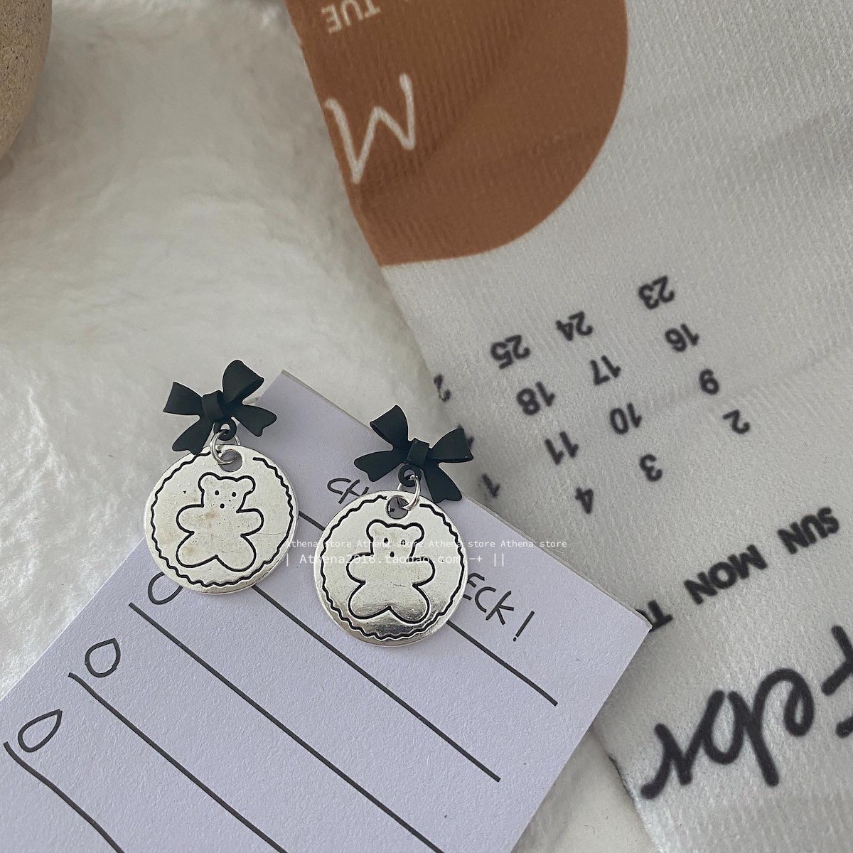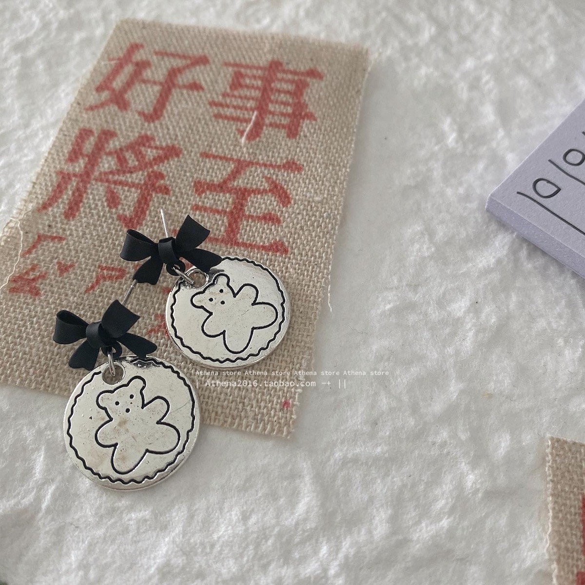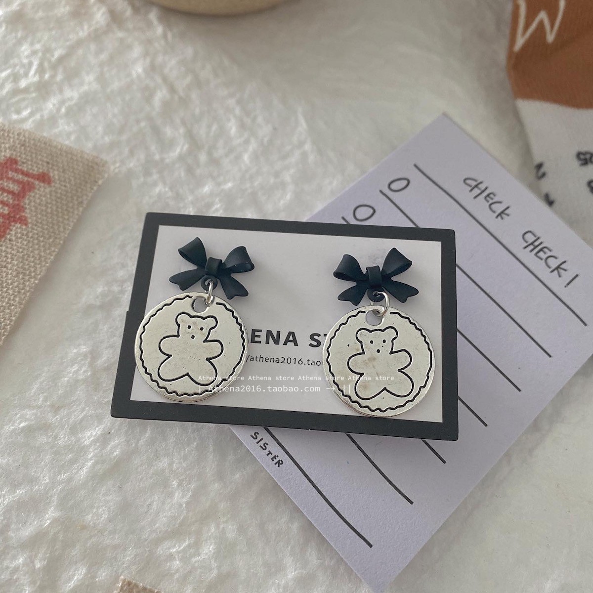 颜色 黑蝴蝶结耳钉