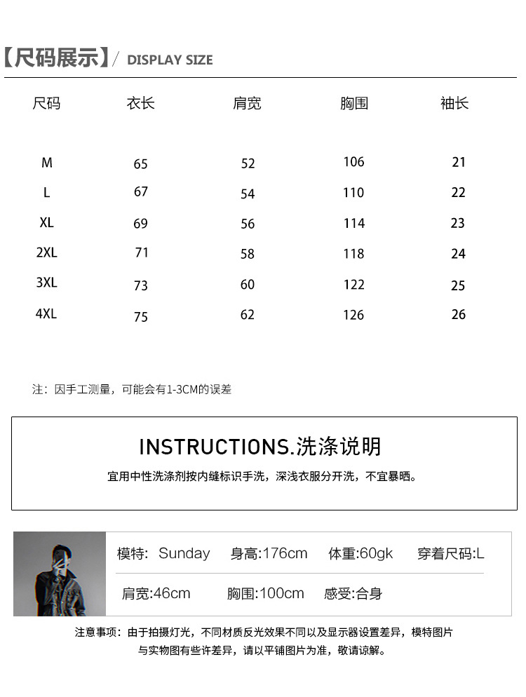 尺码 2XL 3XL 4XL L M XL