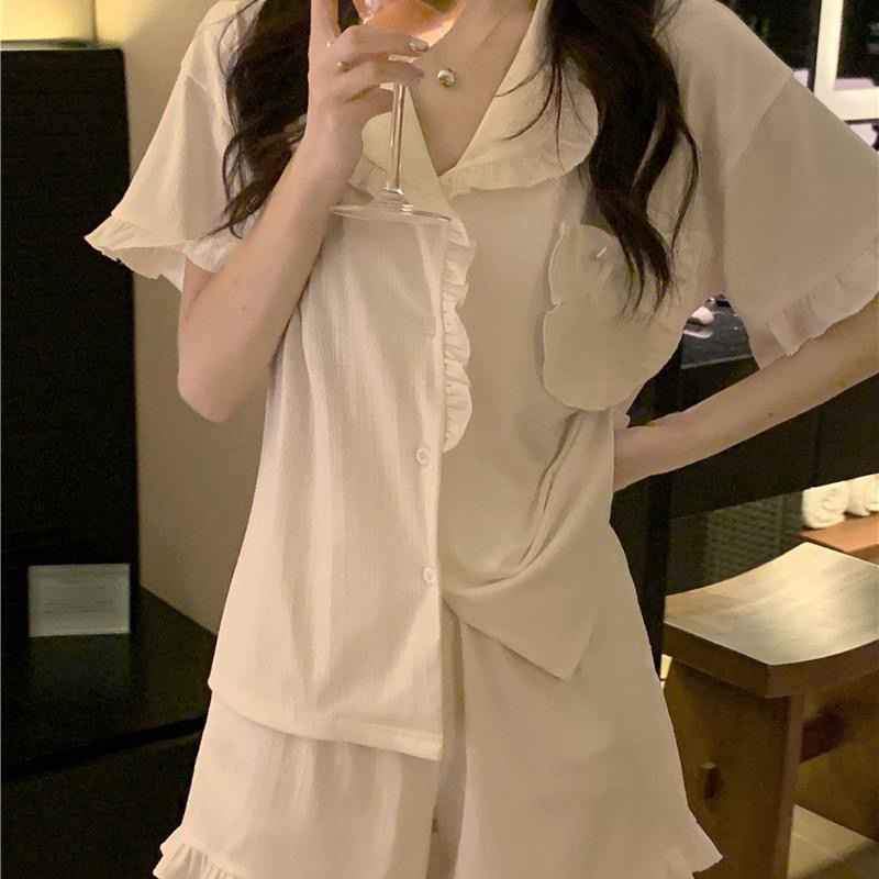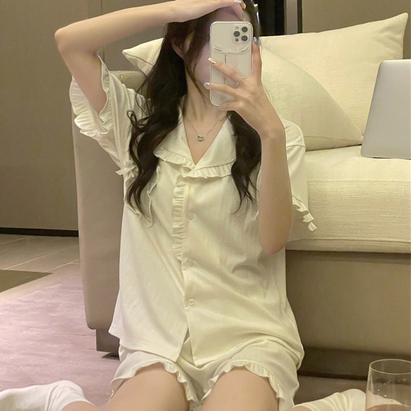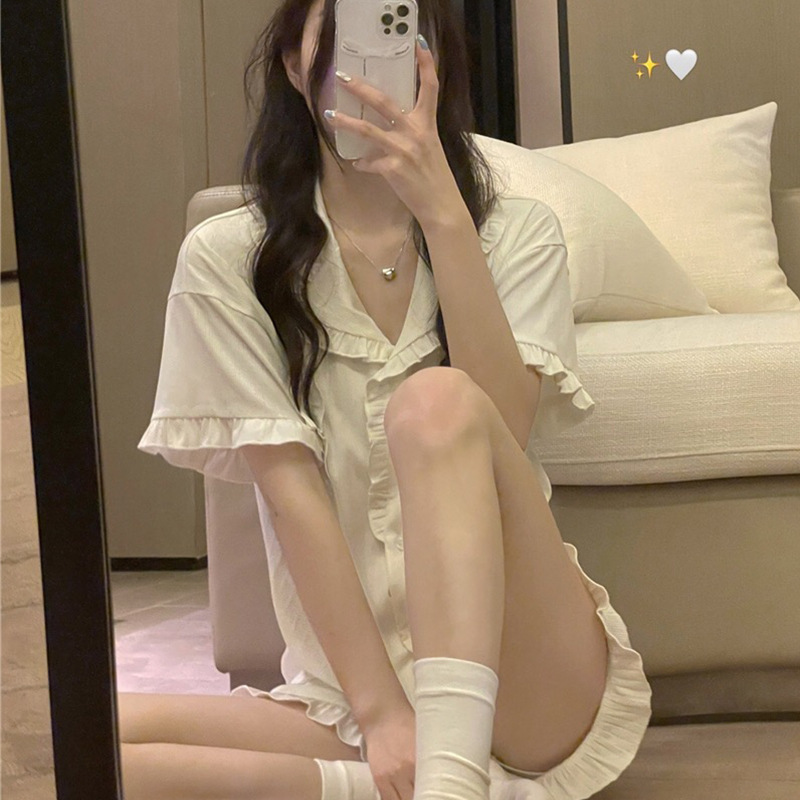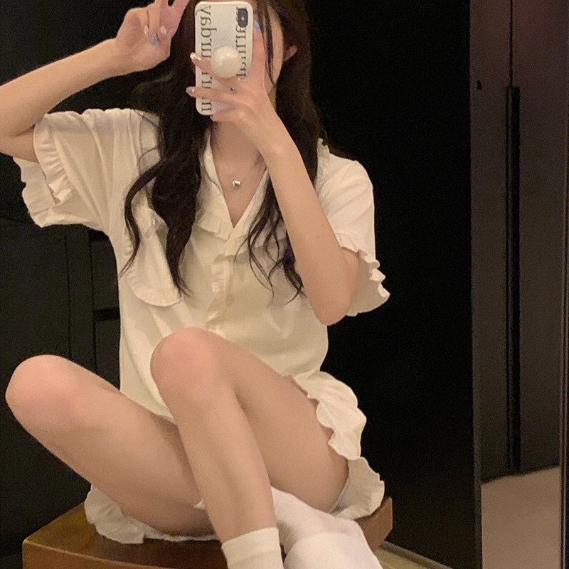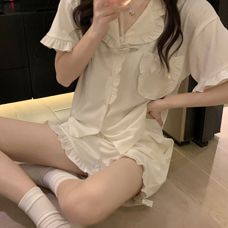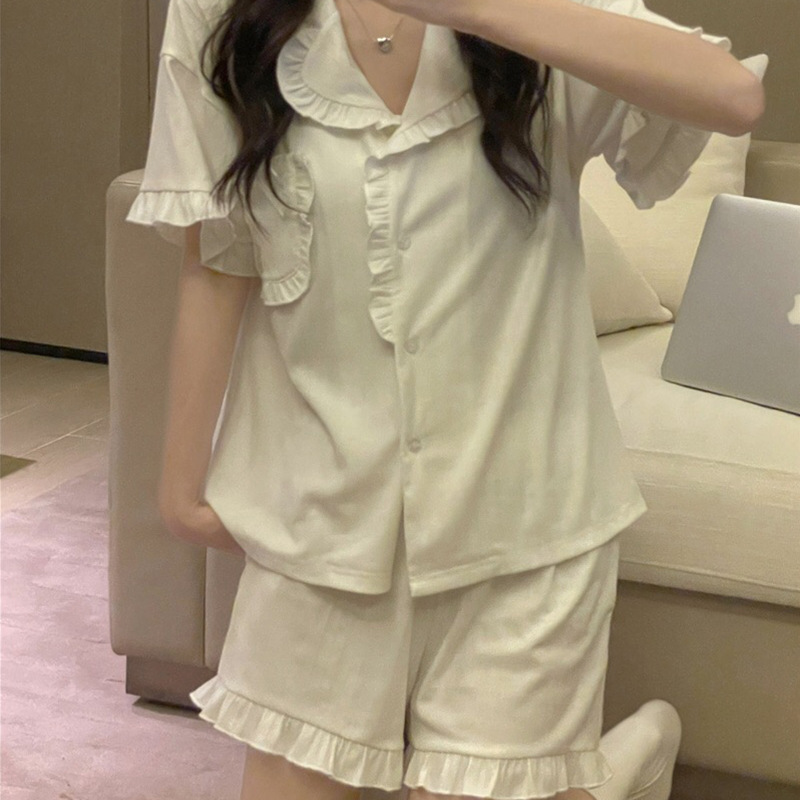 颜色 双短白色花边套装