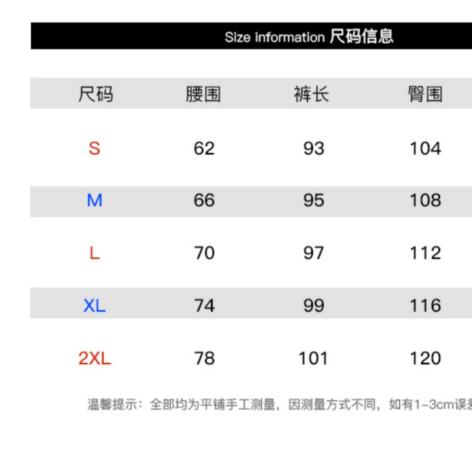尺码 L M XL XXL