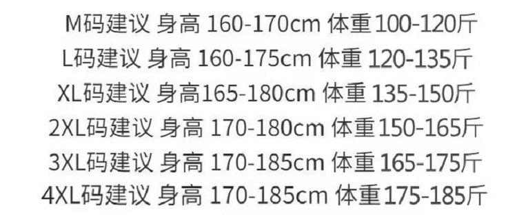 尺码 2XL 3XL 4XL L M XL