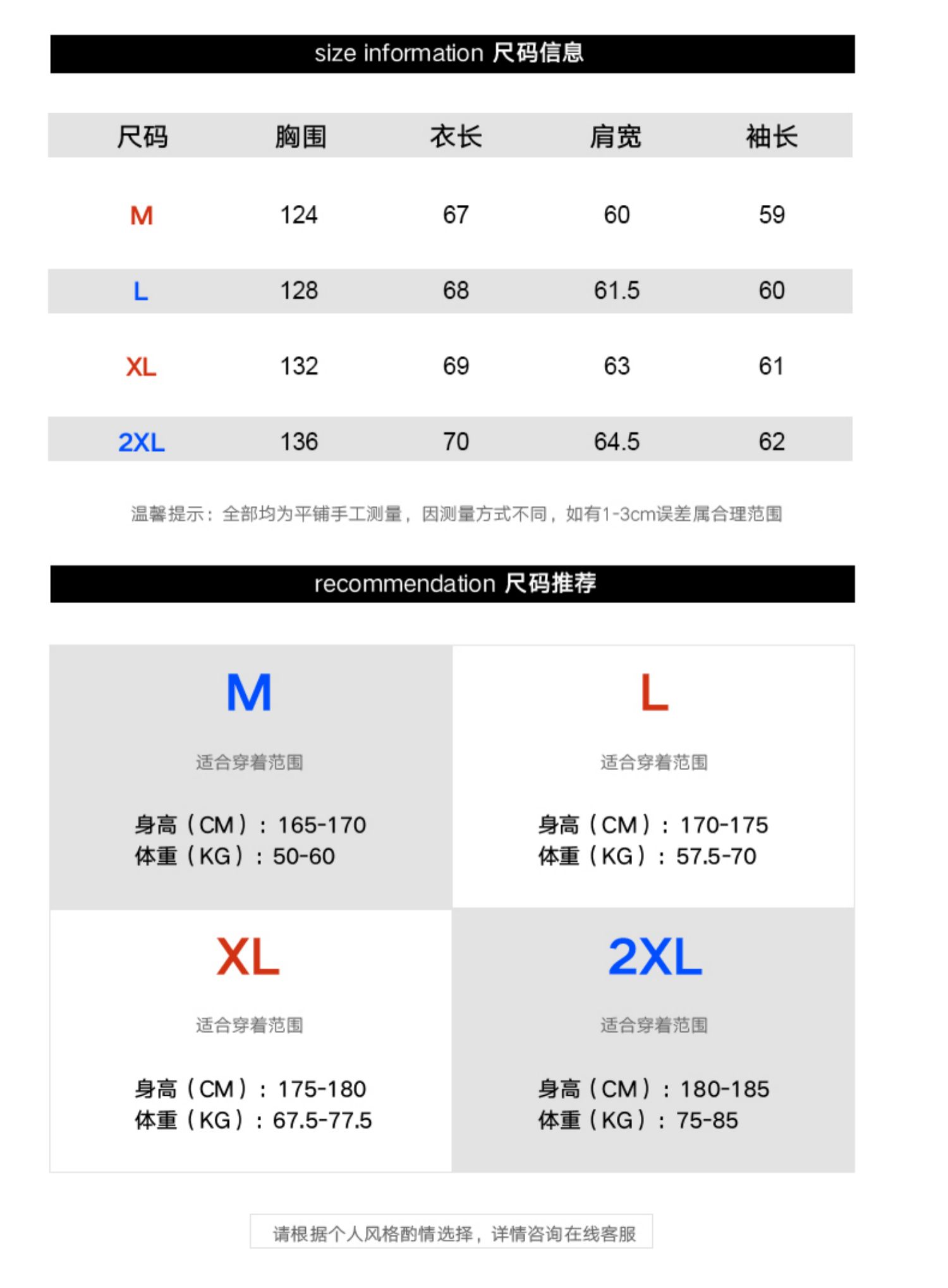 尺码 L M S XL XXL