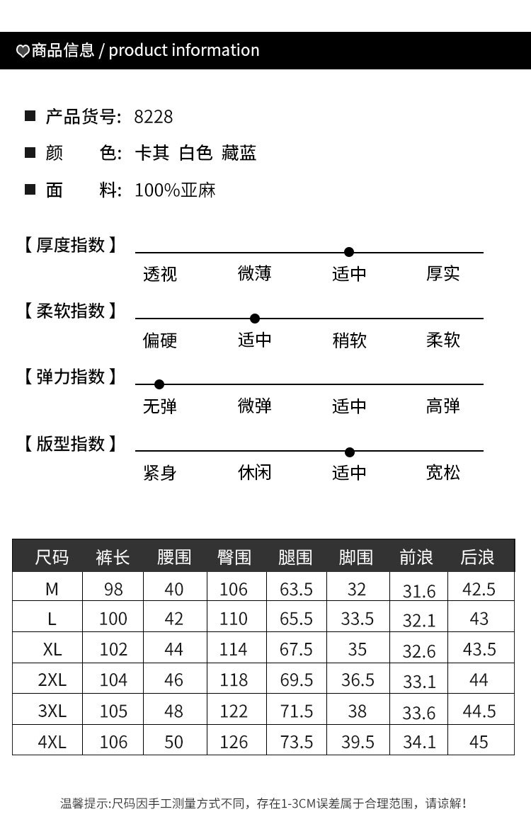 材质成分:亚麻100%