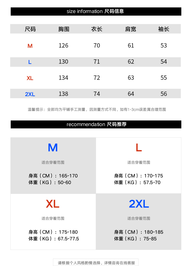 尺码 2XL 3XL L M S XL