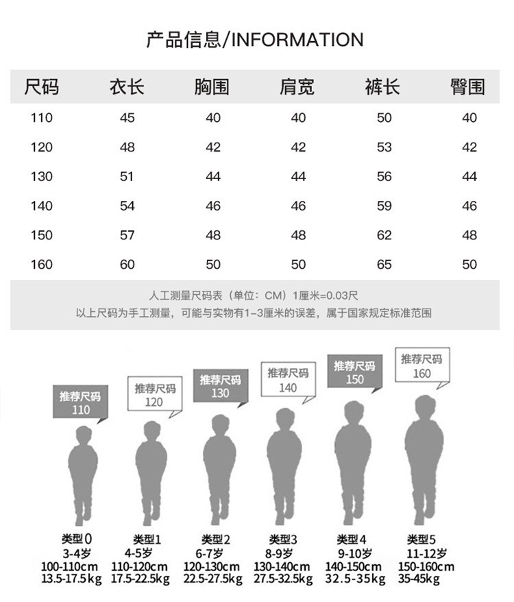 尺码 110cm 120cm 130cm 140cm 150cm 160cm