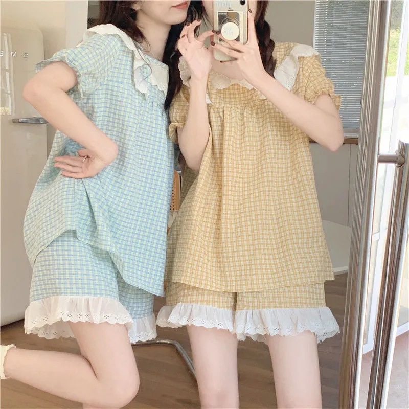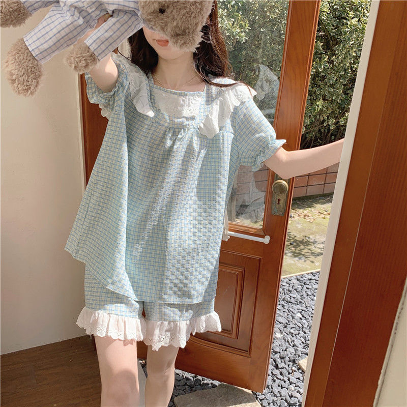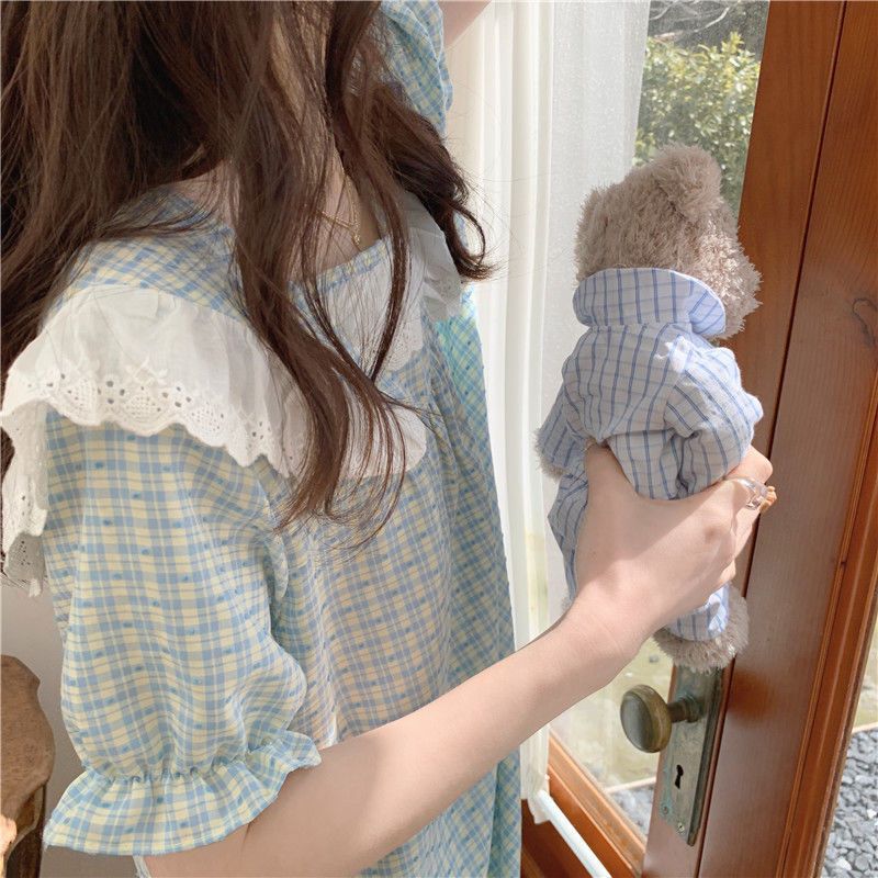 颜色 蓝色蕾丝边格子【双短花边】