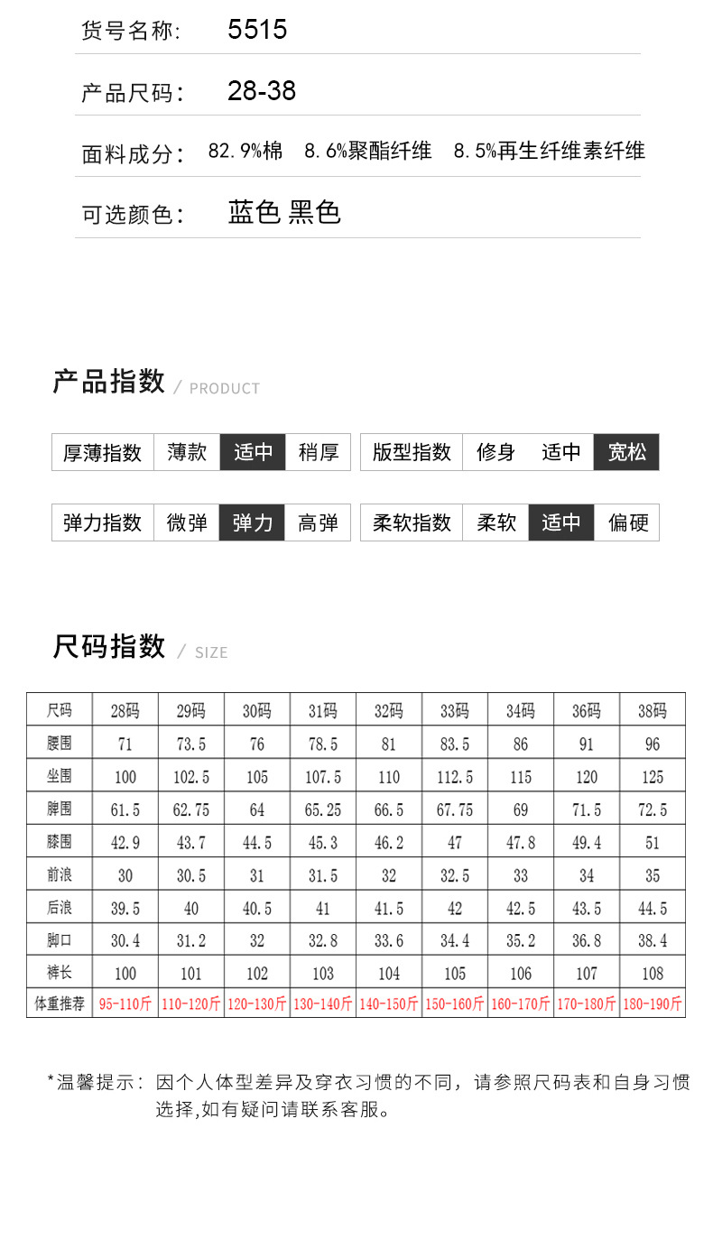 尺码 28 29 30 31 32 33 34 36 38