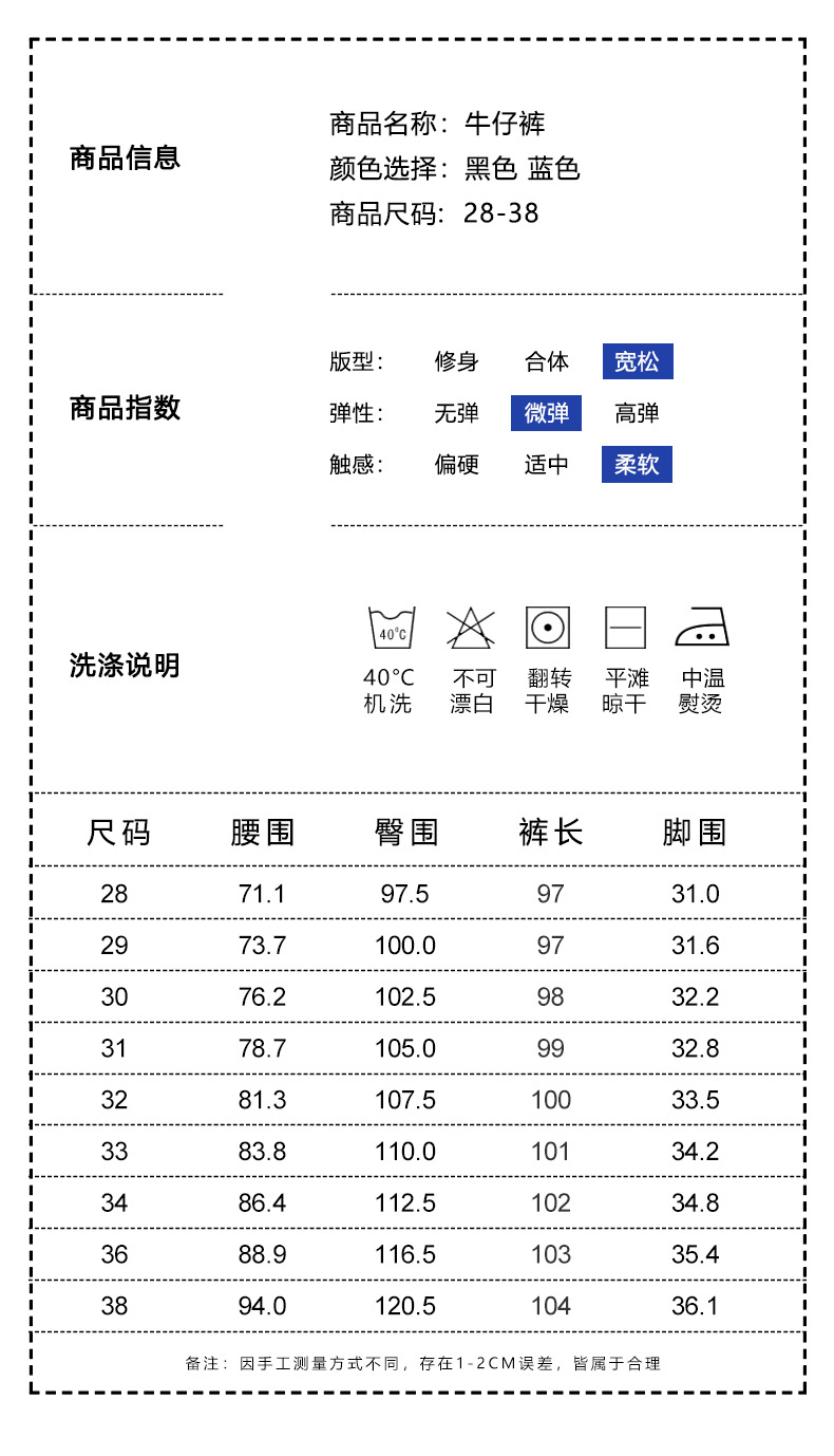 尺码 28 29 30 31 32 33 34 36 38