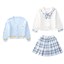 颜色 蓝色两件套 粉色两件套 粉色针织毛衣三件套 蓝色针织毛衣三件套