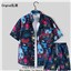 冰丝短袖花衬衫套装男夏季薄款透气海边沙滩速干五分短裤二件套男