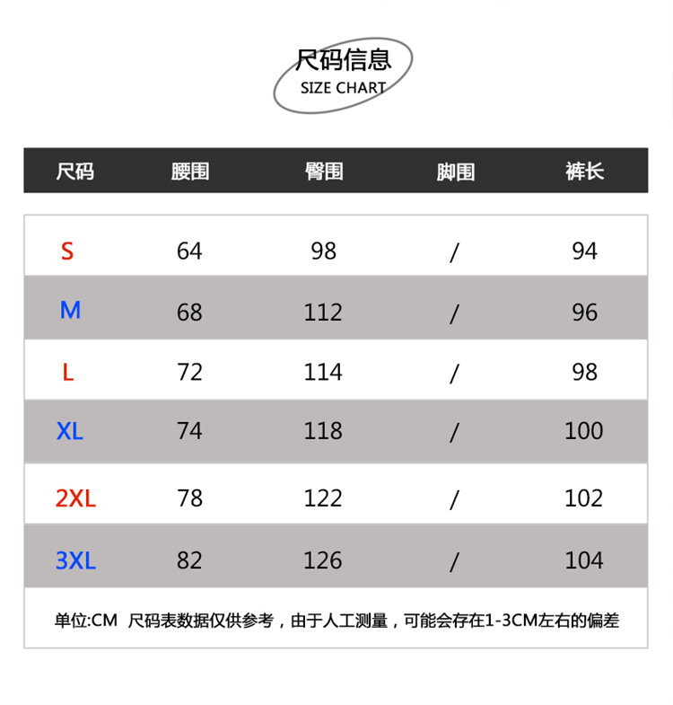 尺码 2XL 3XL L M S XL