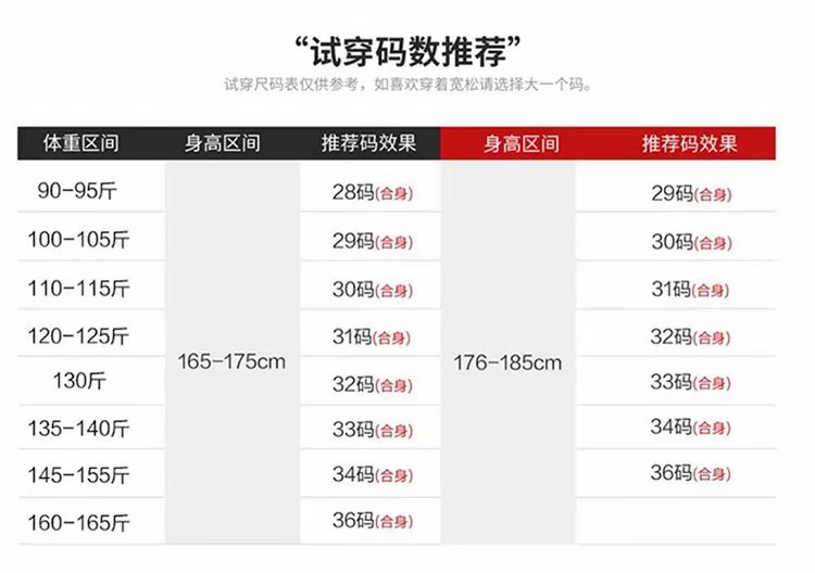 尺码 28 29 30 31 32 33 34 36