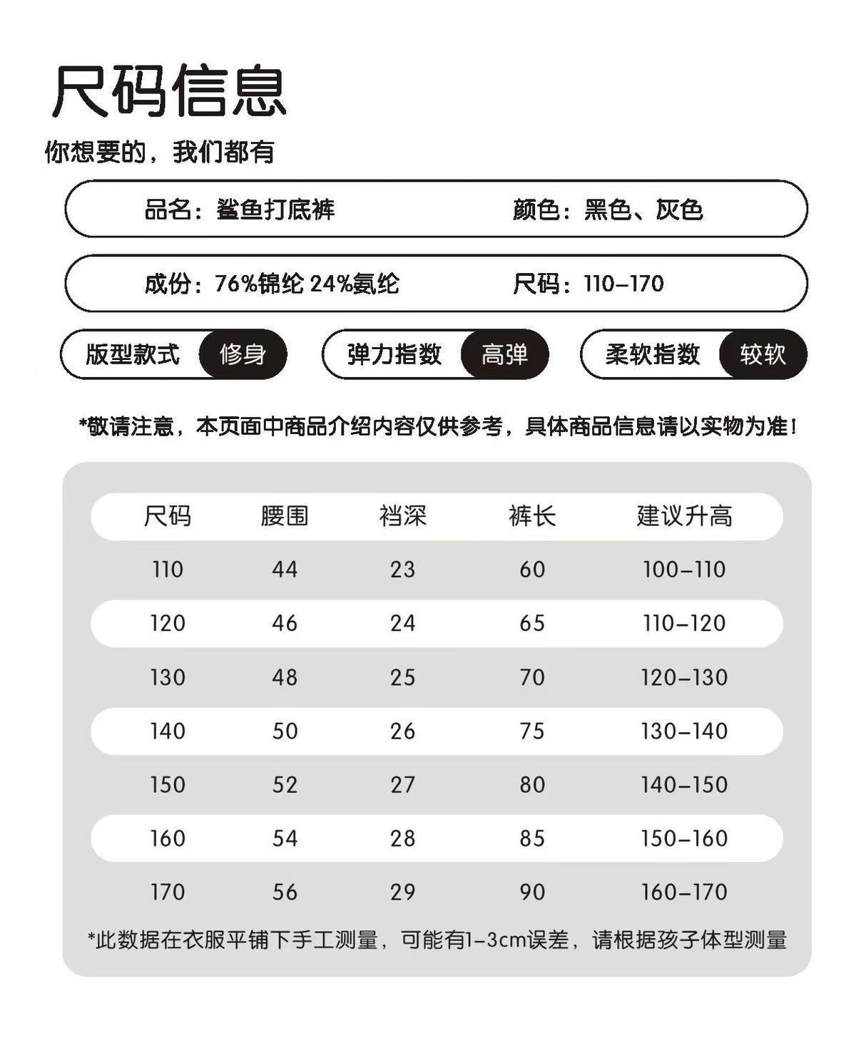 尺码 110cm 120cm 130cm 140cm 150cm 160cm