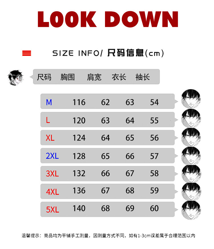 尺码 2XL 3XL L M XL