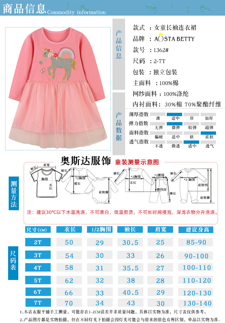 尺码 2T(90) 3T(100) 4T(110) 5T(120) 6T(130) 7T(140)